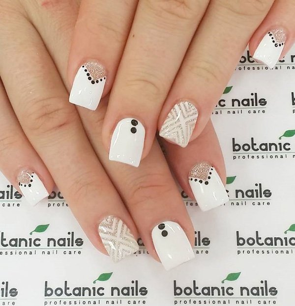 今回はホワイトを貴重としたネイルデザインよ。