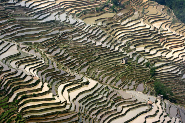 棚田の航空写真を紹介するわ。