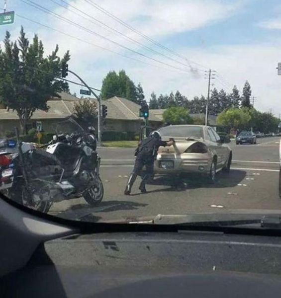 おまわりさんが、道を封鎖してくれて、