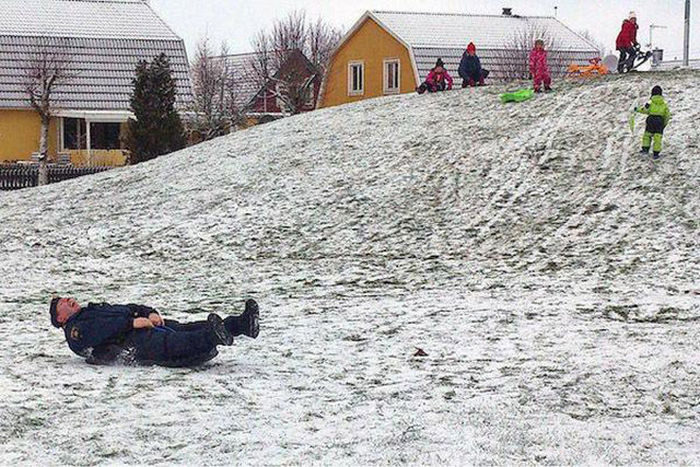 勤務中ですが、ソリ遊びタイム。