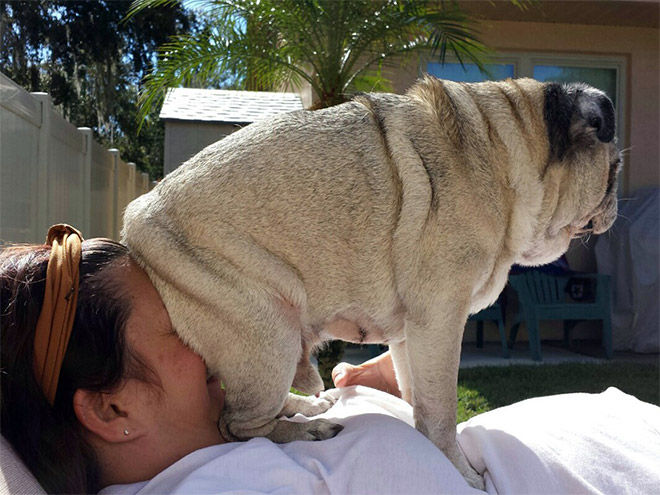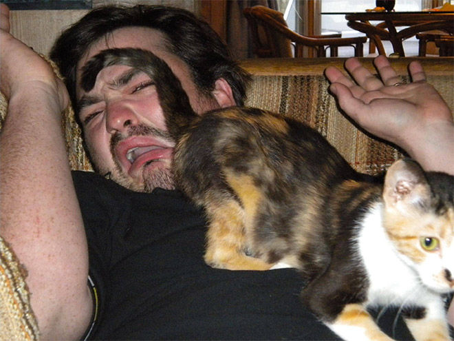 顔に座るのは(多分)愛情です